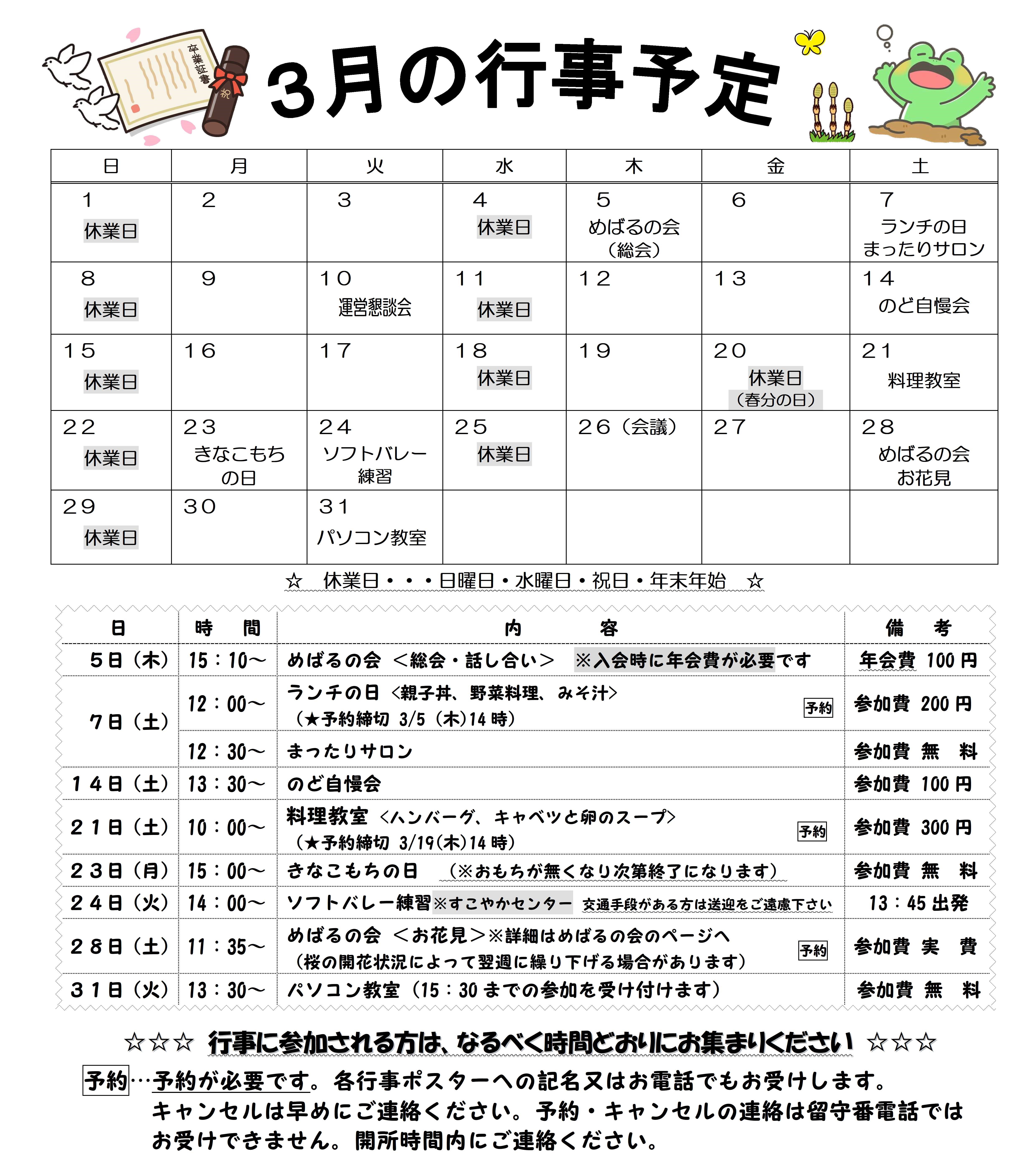 こころの里だより/月間行事予定